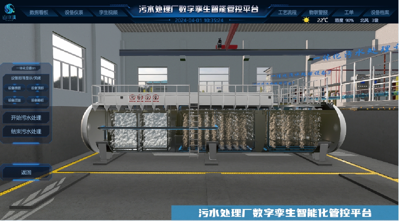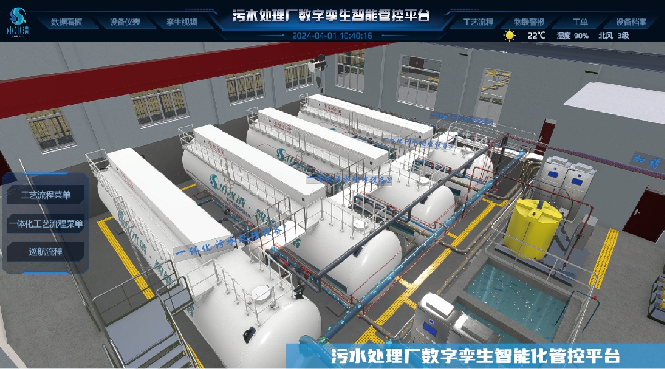 山水清數字孿生智慧管控系統,采用了先進的物聯網、大數據、數字孿生、AI等技術,為公司“兩水兩固”運行廠站提供數字化運維服務。
